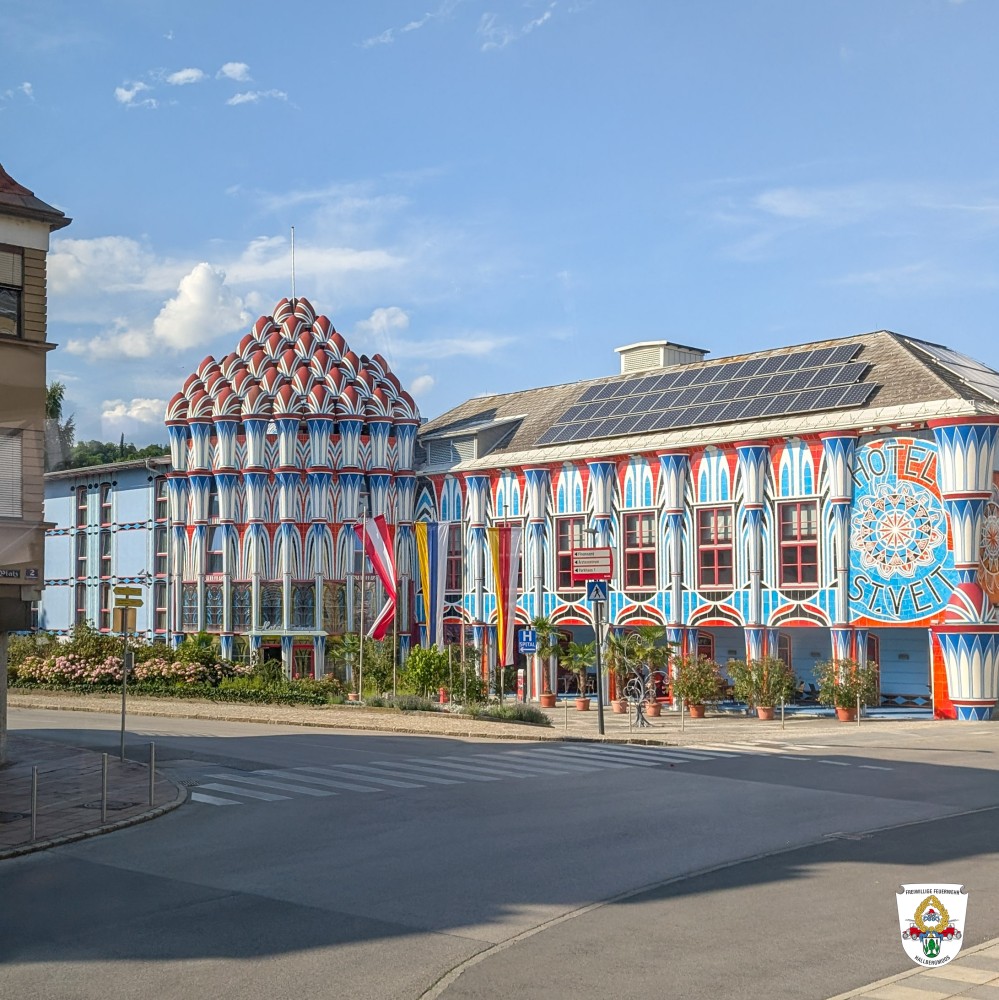 Am Abend erreichten wir das farbenfrohe Kunsthotel Fuchspalast in St. Veit. Nach dem Einchecken ging es direkt weiter zur Blaulichtparty unserer Partnerfeuerwehr. Dort wurden wir mit Musik, stimmungsvoller Beleuchtung, leckeren Cocktails und einer sehr herzlichen Atmosphäre empfangen. Wir kamen mit vielen Kameradinnen und Kameraden aus St. Veit und anderen Wehren ins Gespräch und genossen den Abend in vollen Zügen.