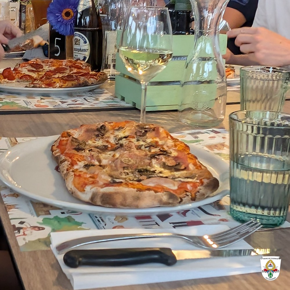 Am Abend ließen wir uns in der Osteria San Vito kulinarisch verwöhnen. Besonders die große Auswahl an Pinsa sorgte für Begeisterung. Ein Highlight des Abends war die Präsentation unseres Imagefilms „Im Kampf gegen die Zeit“. Auf der großen TV-Leinwand des Lokals konnten wir gemeinsam auf das Projekt blicken und den ein oder anderen Besucher begeistern. Anschließend ließen wir den Tag in der Altstadt von St. Veit bei einem gemütlichen Barbesuch ausklingen.
